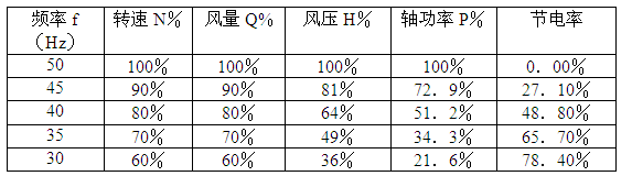 根據(jù)以上公式可以列出電機轉(zhuǎn)速與節(jié)能率的關(guān)系表,如下:  |